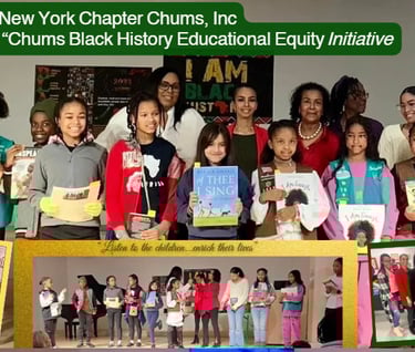 New York Chapter Chums Inc, supports the national initiative Listen to the Children... enrich their lives because children are the cornerstone of our future embracing their essence and helping them to realize their talents, helps our communities to grow and flourish. All chapters of Chums Incorporated have a creative way to support our communities through the building up of our children. By establishing relationships, with schools, churches, childcare services and mentorship programs and healthy eating initiatives.